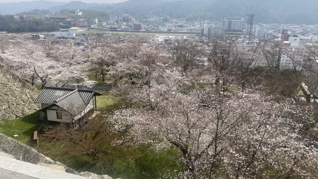 研修前に津山城を登り桜を楽しみました。まだ咲き始めたばかりでしたが、桜の本数が多くとても綺麗でした。